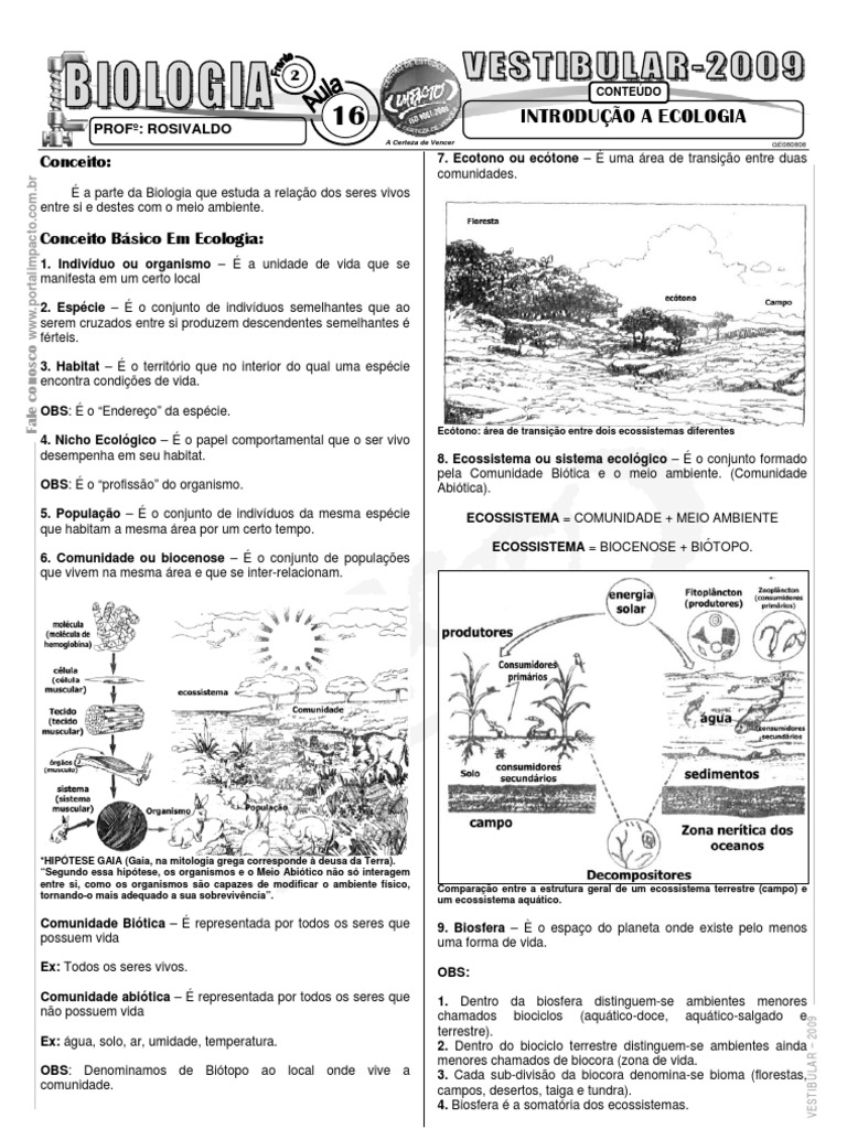 Comunidade Biótica – É representada por todos os seres que 9. Biosfera – È o espaço do planeta onde existe pelo menos