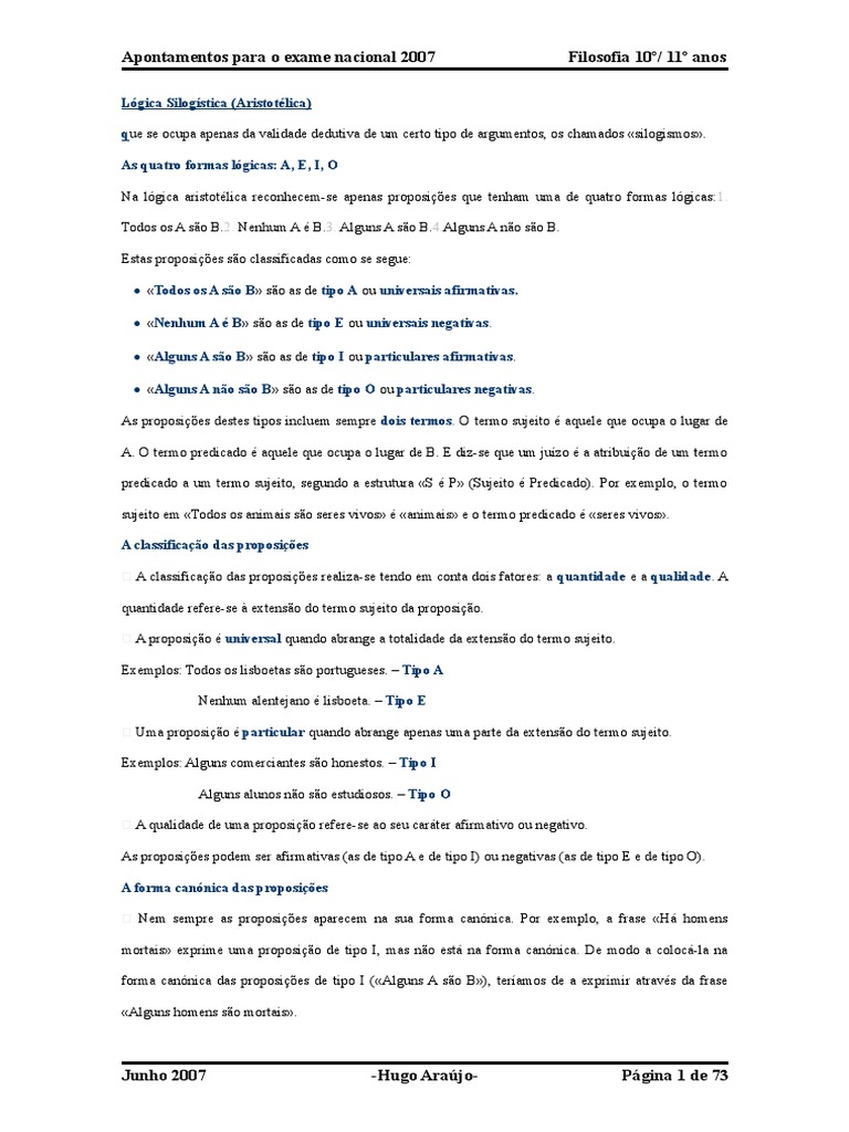 Apontamentos para o exame nacional 2007 Filosofia 10º/ 11º anos