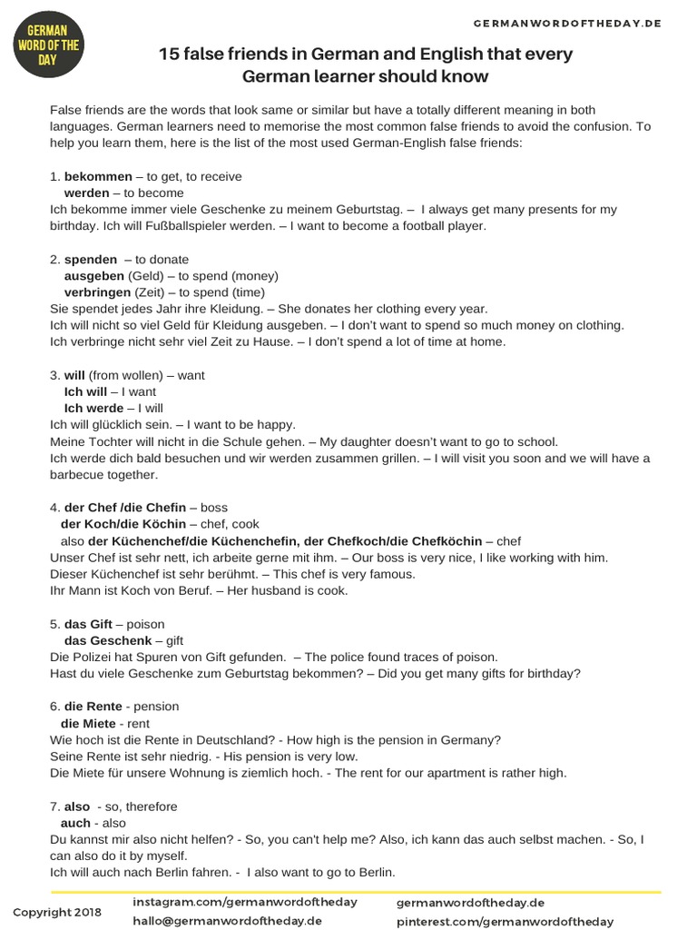 day 15 false friends in German and English that every