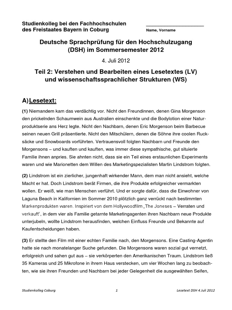 Studienkolleg Coburg 1 Lesetext DSH 4.Juli 2012