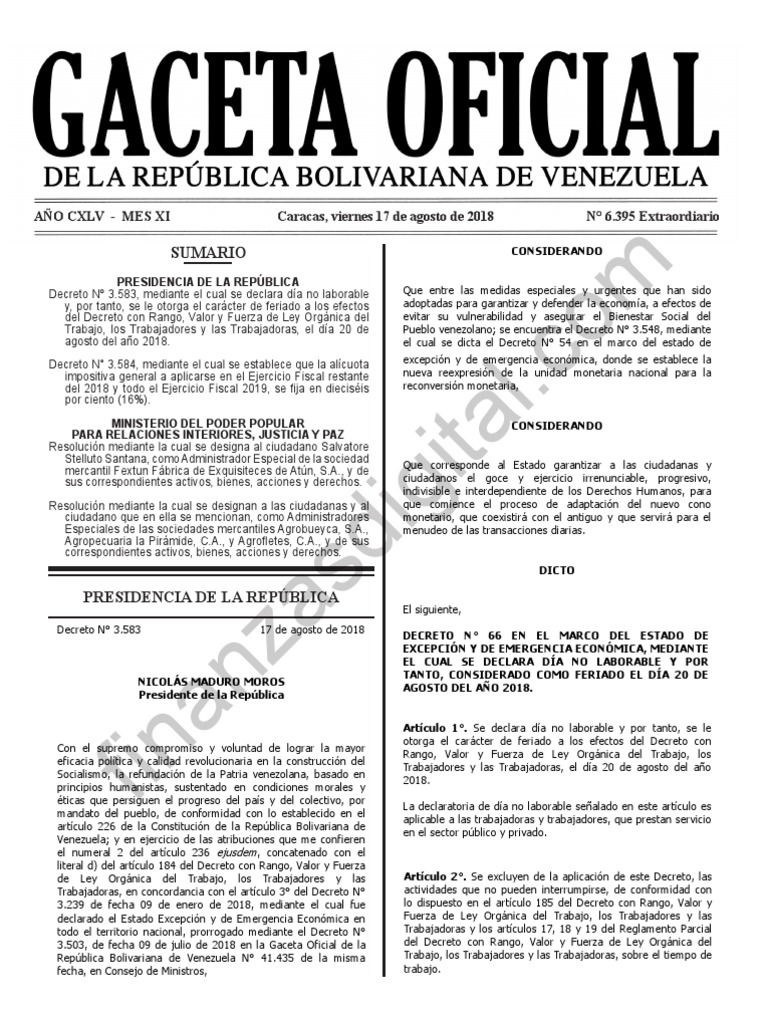 publicación en la Gaceta Oficial de la República Bolivariana de
