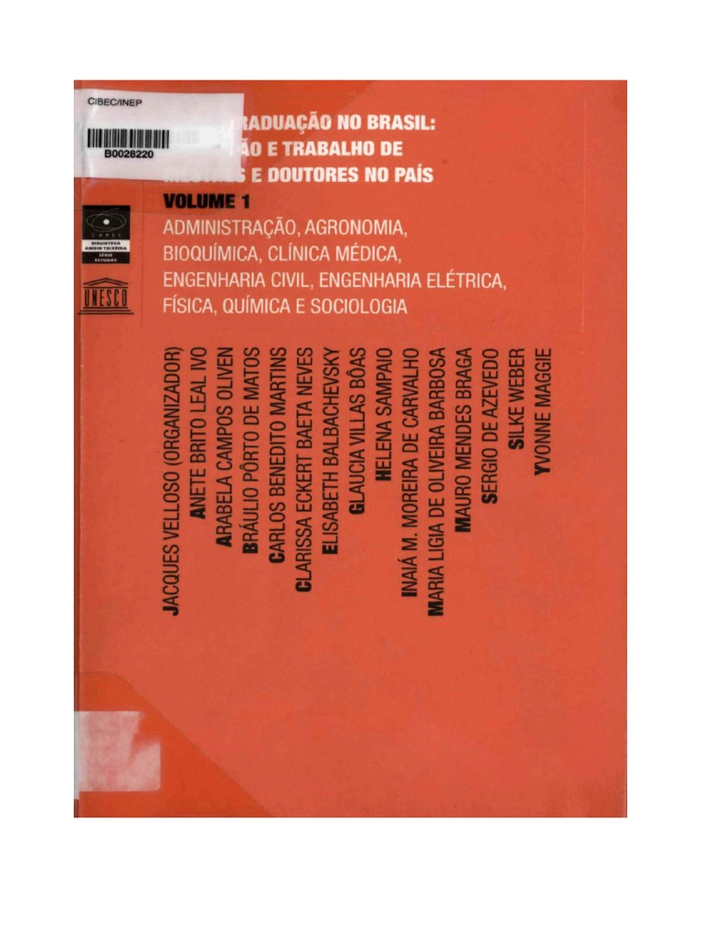 Balbachevsky, Glaucia Villas Boas, Helena Sampaio, Inaiá M. Moreira de Carvalho, Maria das Graças Corrêa de Oliveira, Maria Ligia de Oliveira Barbosa, Mauro Mendes Braga, Sérgio de Azevedo, Silke Weber, Yvonne Maggie - Brasília: Fundação Coordenação de Aperfeiçoamento de Pessoal de Nível Superior, 2002 Vol. I - 452 p.: il, 24 cm.