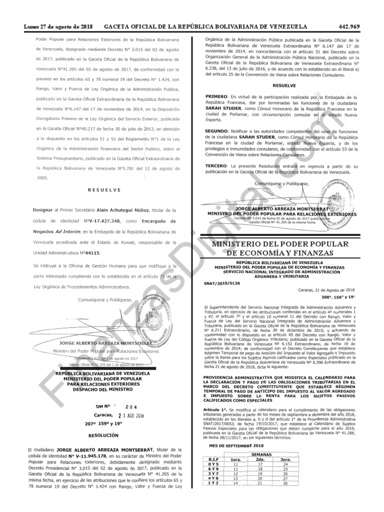 442.970 GACETA OFICIAL DE LA REPÚBLICA BOLIVARIANA DE VENEZUELA Lunes 27 de agosto de 2018