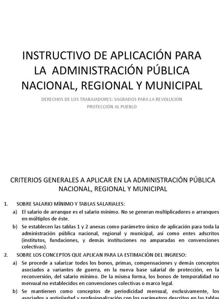 Escala de Sueldos y Salarios para la Administración Pública y sobre el sueldo único en los