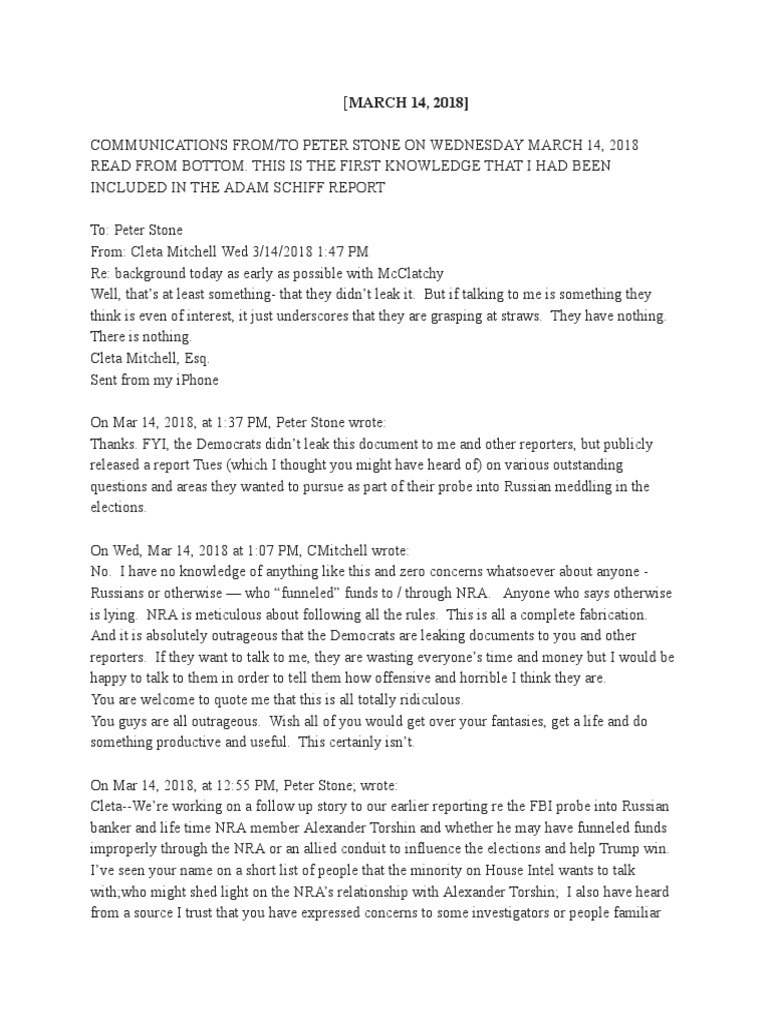 COMMUNICATIONS FROM/TO PETER STONE ON WEDNESDAY MARCH 14, 2018