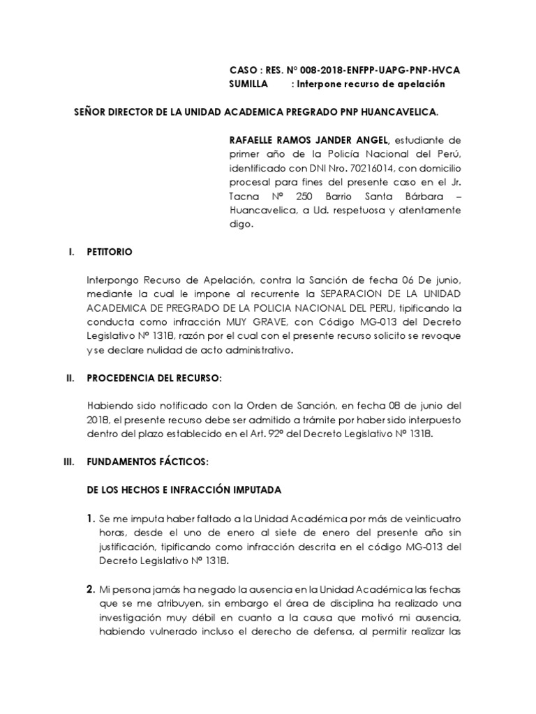 A usted mi Superior PNP, solicito admitir el presente recurso y