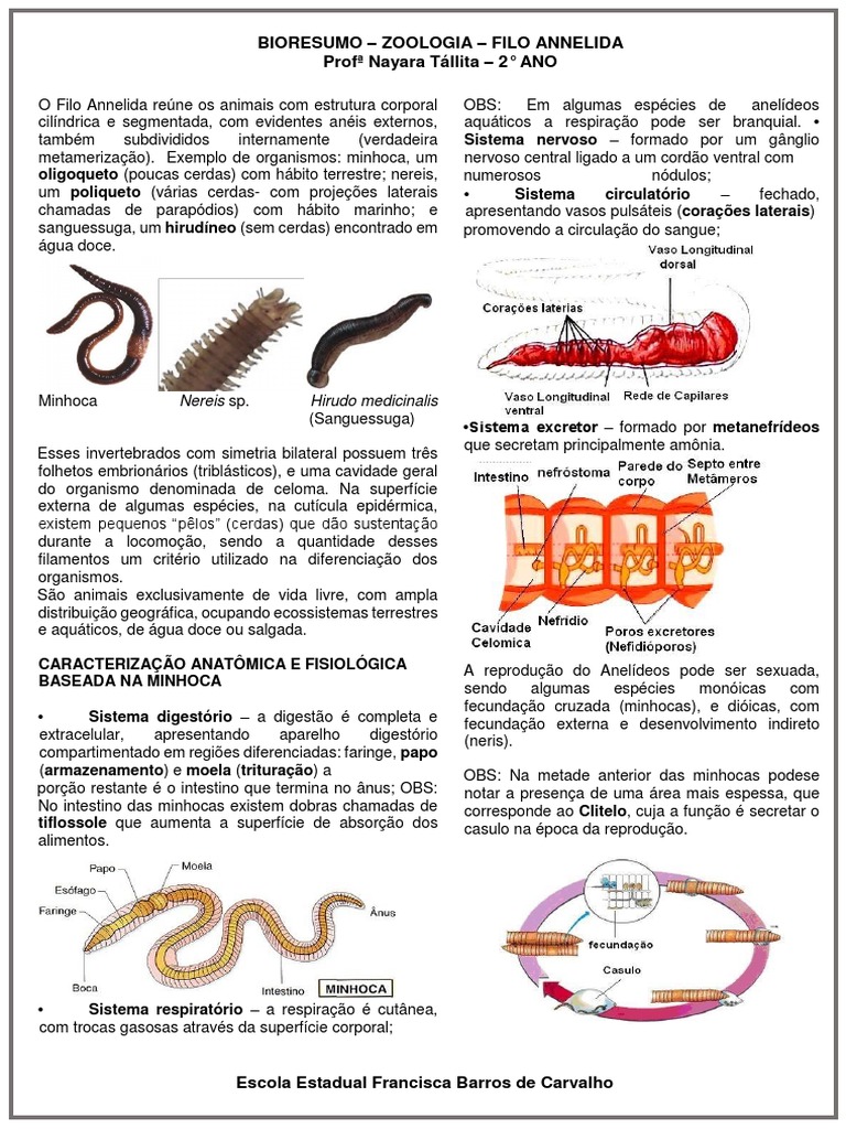 oligoqueto (poucas cerdas) com hábito terrestre; nereis, numerosos nódulos;