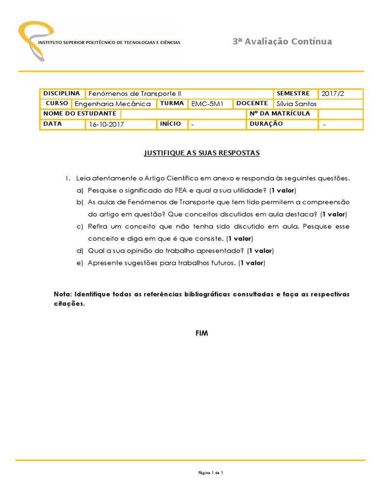 d) Qual a sua opinião do trabalho apresentado? (1 valor)