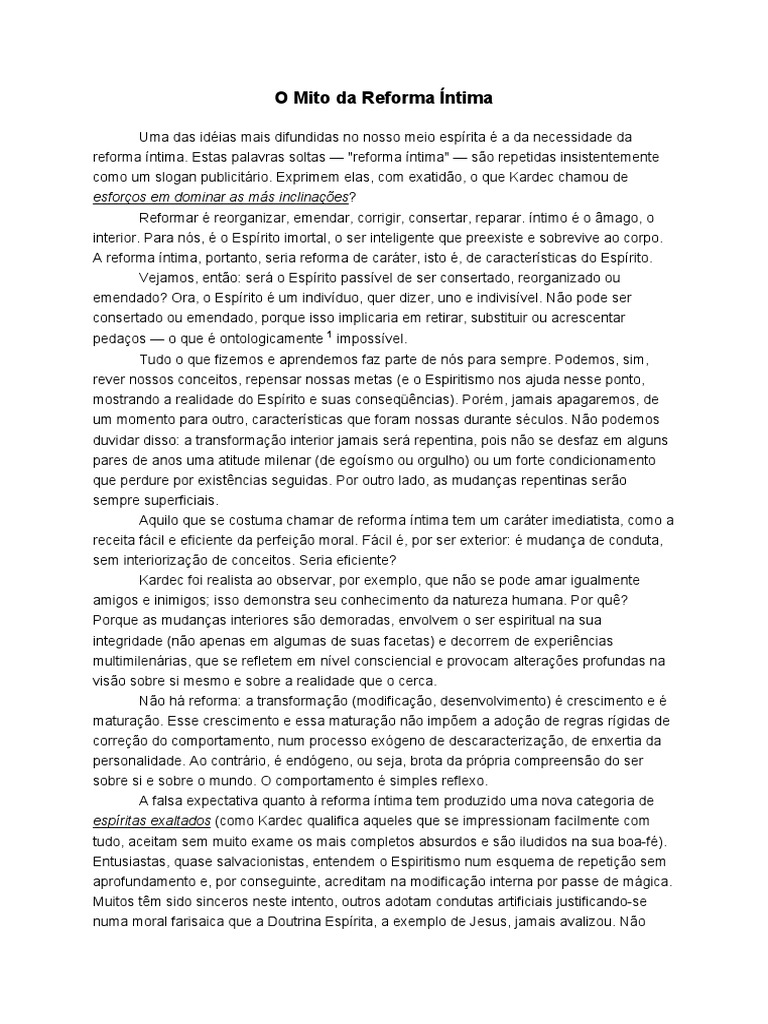 A reforma íntima, portanto, seria reforma de caráter, isto é, de características do Espírito.