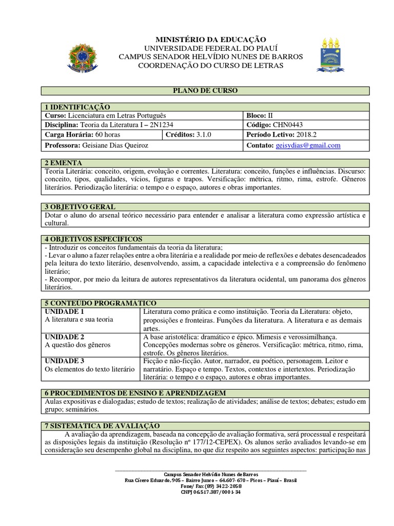 Campus Senador Helvídio Nunes de Barros Rua Cícero Eduardo, 905 – Bairro Junco – 64.607-670 – Picos – Piauí – Brasil Fone/ Fax (89) 3422-2058 CNPJ 06.517.387/0001-34