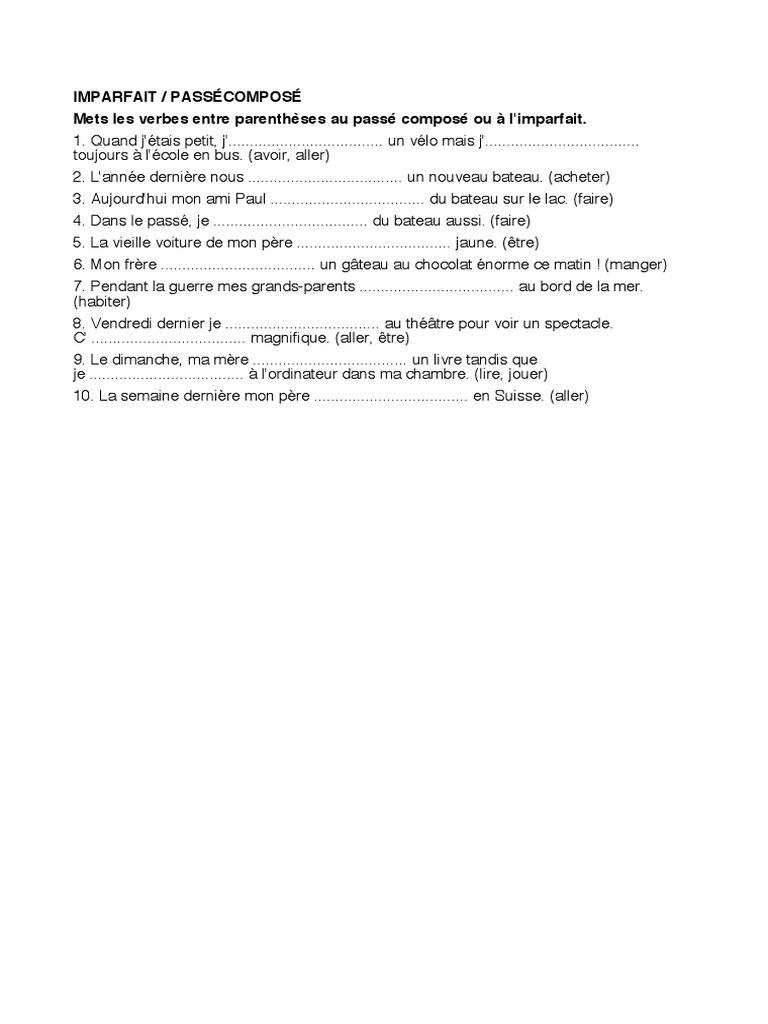 10. La semaine derniere mon pere .................................... en Suisse. (aller)