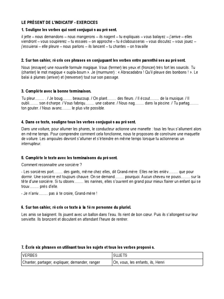 1. Souligne les verbes qui sont conjugue s au pre sent.