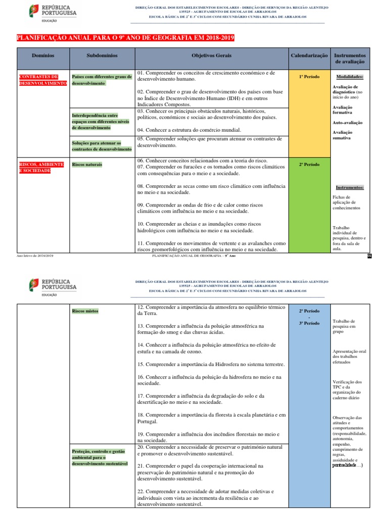 PLANIFICAÇÃO ANUAL PARA O 9º ANO DE GEOGRAFIA EM 2018-2019