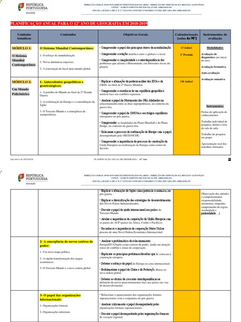 Curriculares de Geografia” de 2001, e, pelos documentos “Projeto Educativo” e “Plano de Desenvolvimento Curricular” da Escola Secundária Cunha Rivara de Arraiolos.