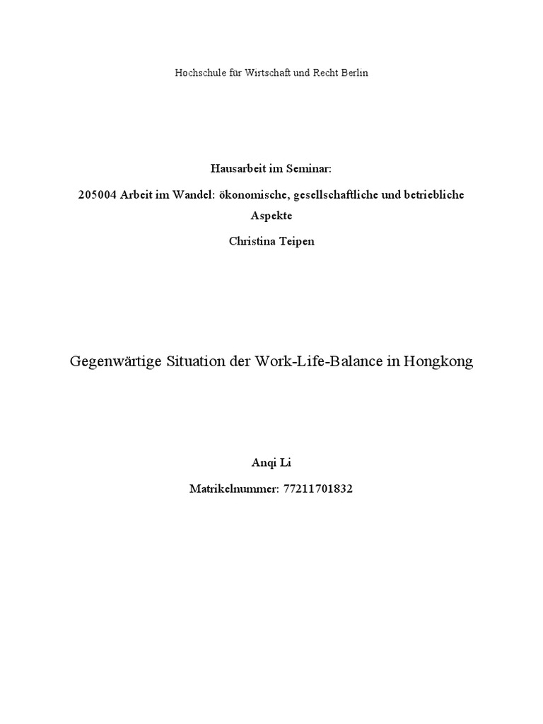 1 Einleitung: Warum hat Hongkong besonders starkes Problem mit Work-Life-Balance?
