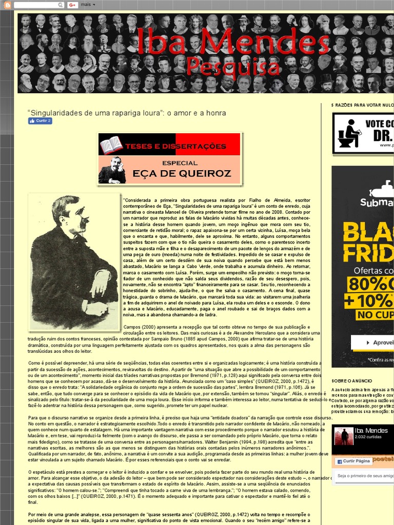 Perguntei-lhe então se era de uma família que eu conhecera que tinha o apelido de Macário. E como ele me respondeu que era primo desses, eu tive logo do seu caráter uma idéia simpática, porque os Macários eram uma antiga família, quase uma dinastia de comerciantes, que mantinham uma severidade religiosa a sua velha tradição de honra e de escrúpulo. (QUEIROZ, 2000, p. 1472).