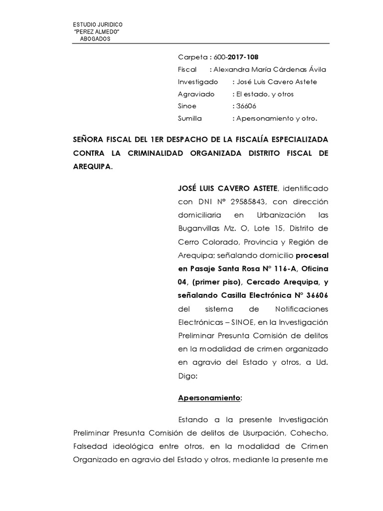 N° 07736 del Colegio de Abogados de Arequipa, y otros letrados que