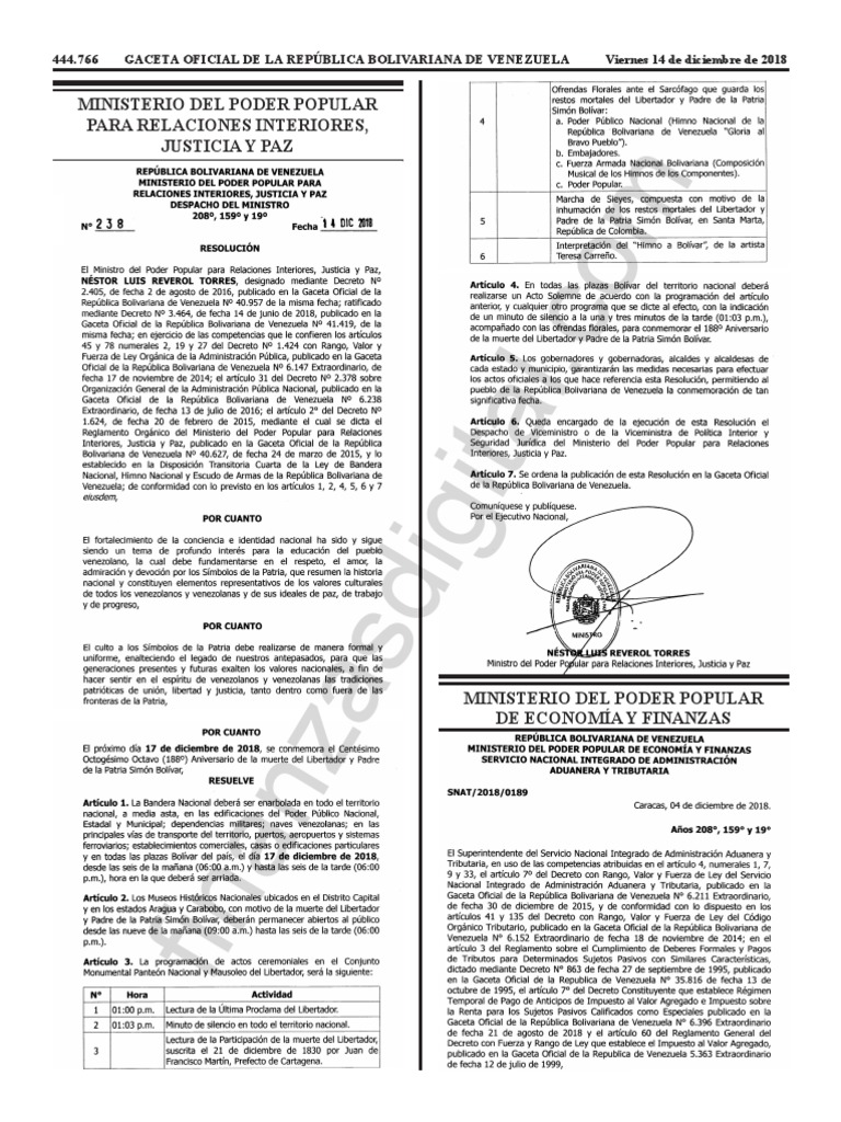 444.768 GACETA OFICIAL DE LA REPÚBLICA BOLIVARIANA DE VENEZUELA Viernes 14 de diciembre de 2018