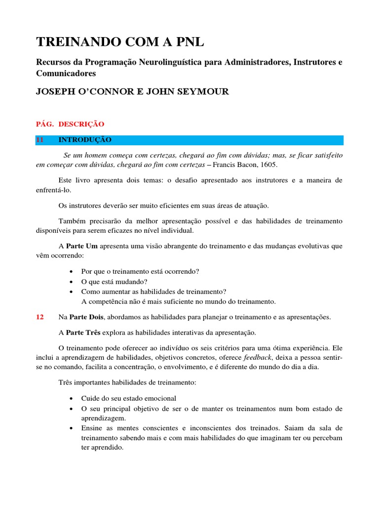 Este livro apresenta dois temas: o desafio apresentado aos instrutores e a maneira de