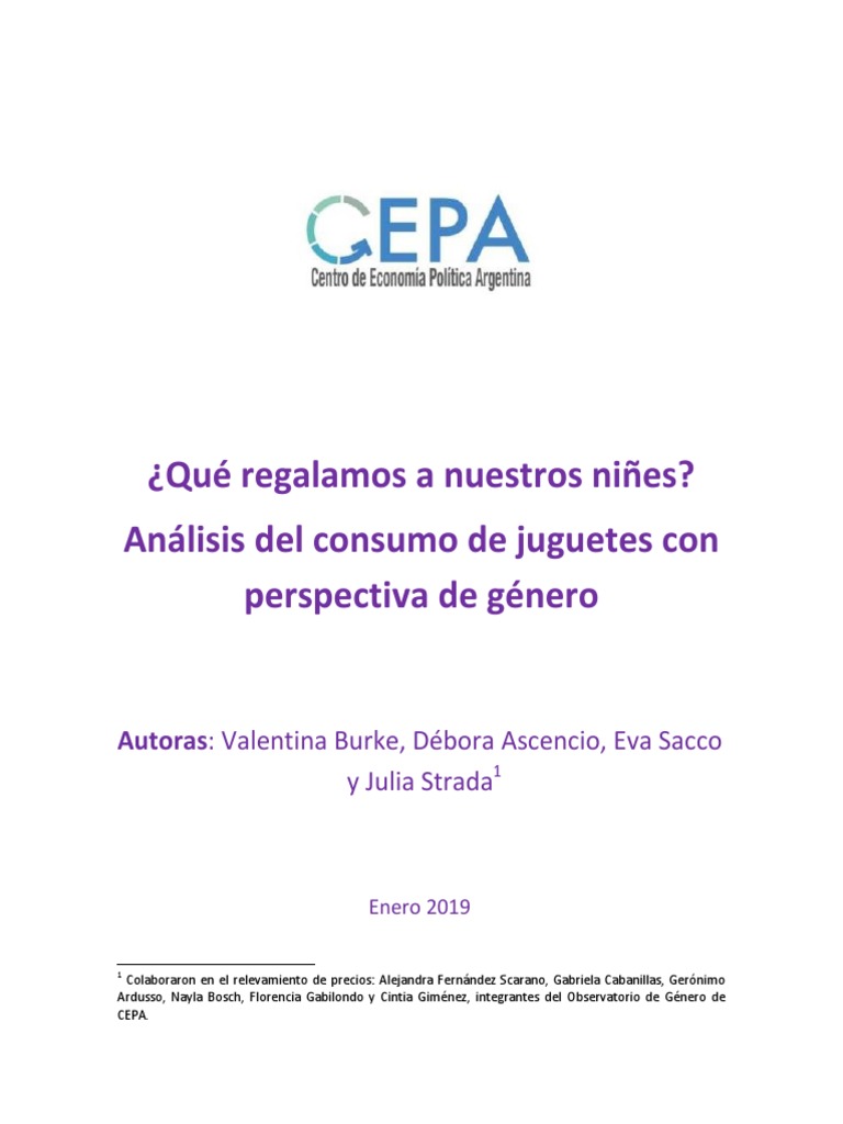 juguetes. El informe se desarrolla en base a dos grandes núcleos de análisis. En primer