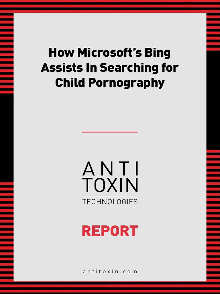 Following an anonymous tip provided to TechCrunch, and on their request for assistance in this matter due to our domain of expertise, AntiToxin Technologies details in this report how Microsoft’s search engine, Bing, not only makes child pornography available in search results, but also assists with suggested keyword phrases and associated images.