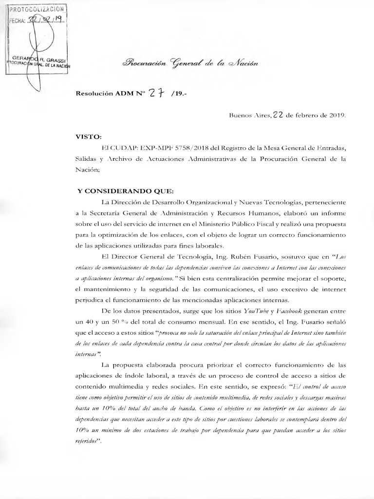 sobre el uso del servicio de internet en el Ministerio Público Fiscal y realizó una propuesta