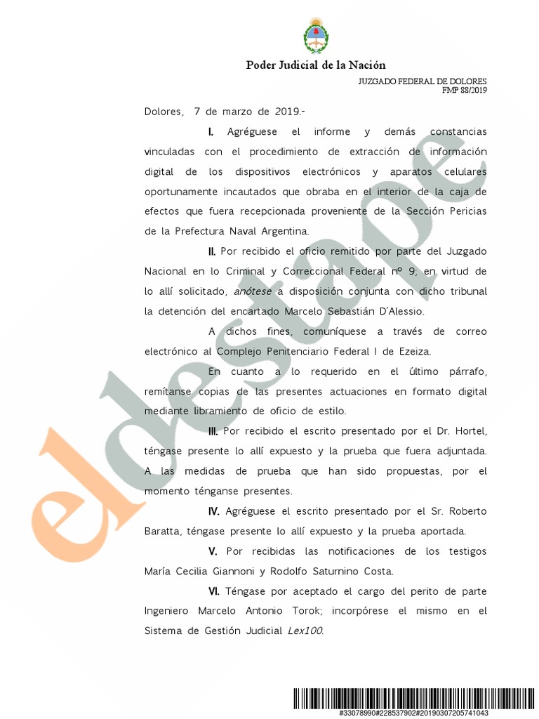 ordenado a Marcelo Sebastián D´Alessio la realización de una