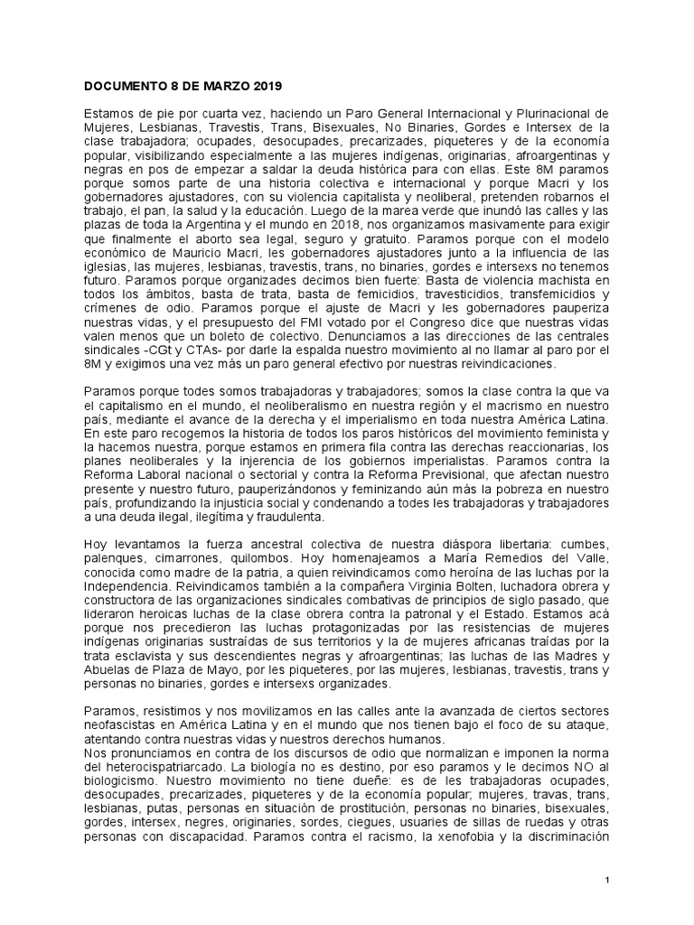 del heterocispatriarcado. La biología no es destino, por eso paramos y le decimos NO al