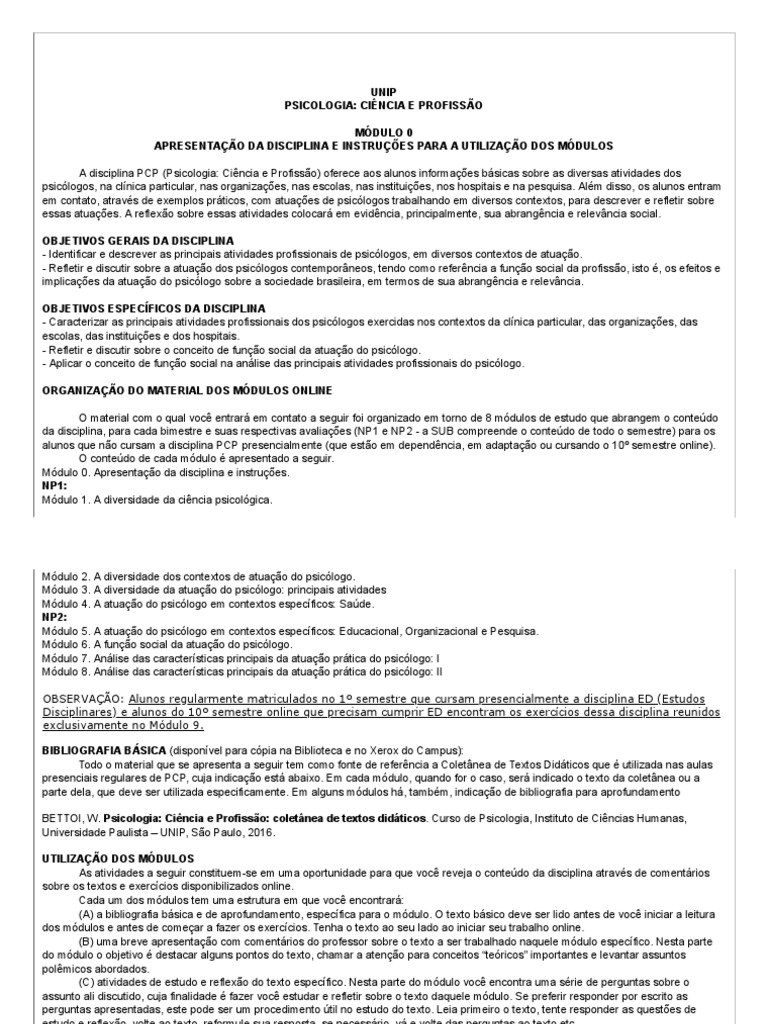 presenciais regulares de PCP, cuja indicação está abaixo. Em cada módulo, quando for o caso, será indicado o texto da coletânea ou a