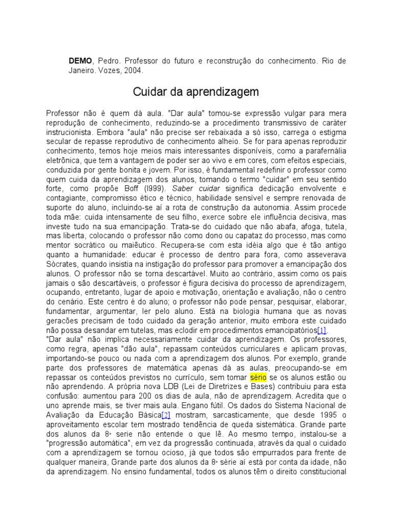 fracasso escolar, mas de garantir o direito de aprender do aluno (Demo, 1998b).
