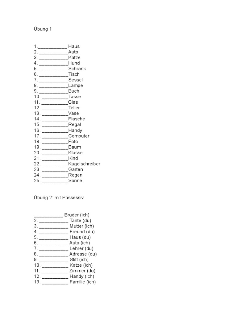 Übung 2: mit Possessiv