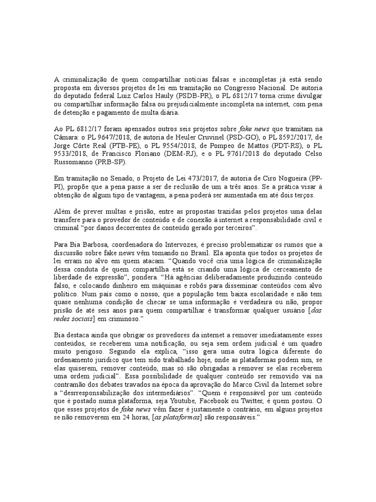 que esses projetos de fake news vêm fazer é justamente o contrário, em alguns projetos