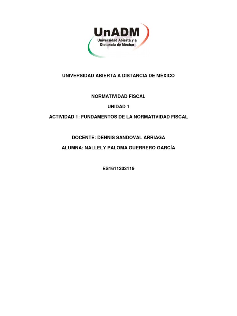 ACTIVIDAD 1: FUNDAMENTOS DE LA NORMATIVIDAD FISCAL