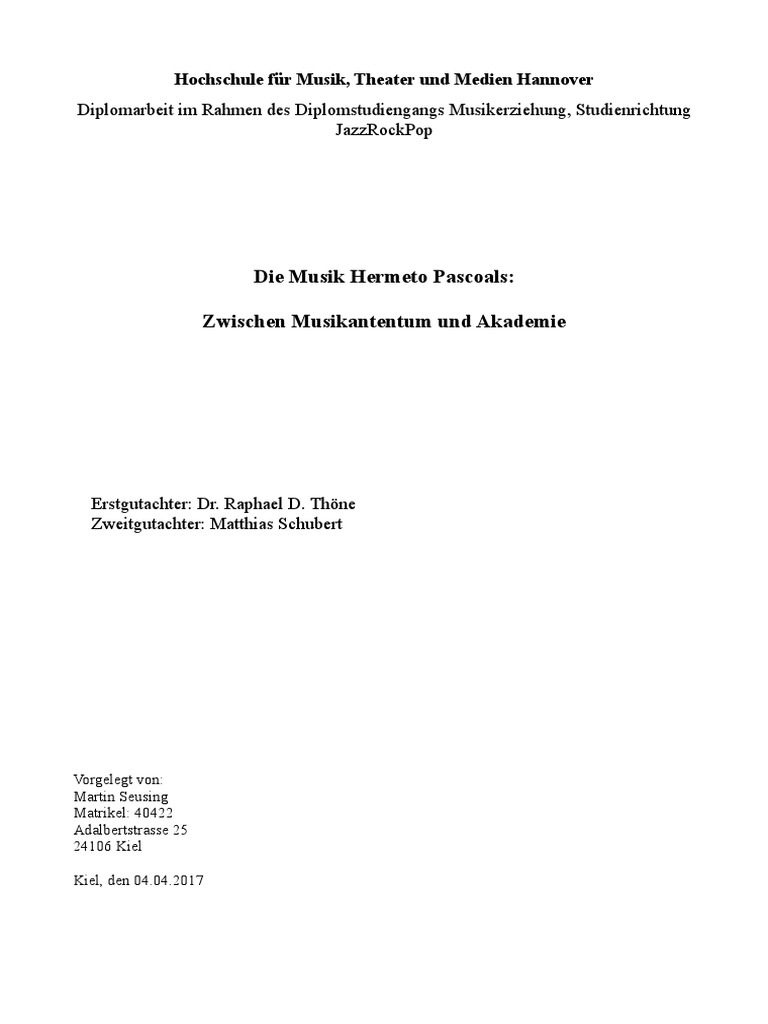 Personen, wie Hermeto Pascoal, in Artikeln nur den Vornamen benutzt. Ich werde in meiner Arbeit so