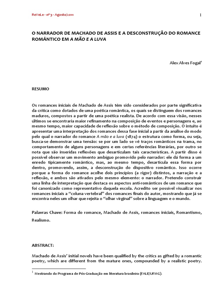 e a luva (1874) o estrutura como forma, ou seja, analisar algumas estratégias e elementos