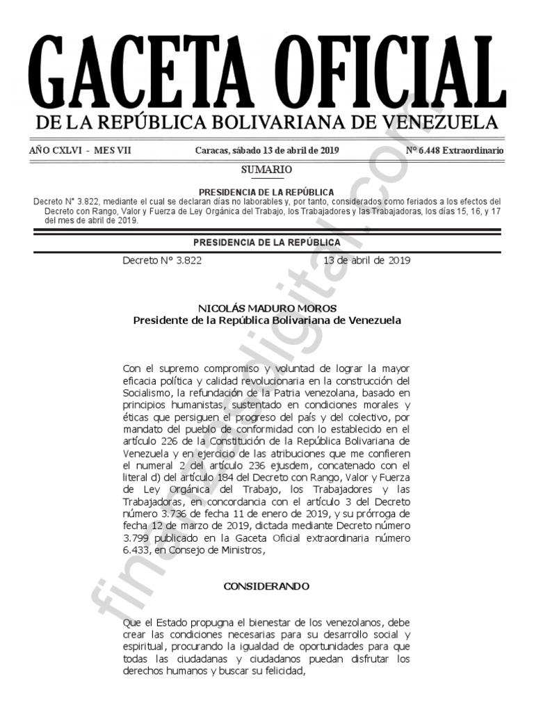 AÑO CXLVI - MES VII Caracas, sábado 13 de abril de 2019 N° 6.448 Extraordinario