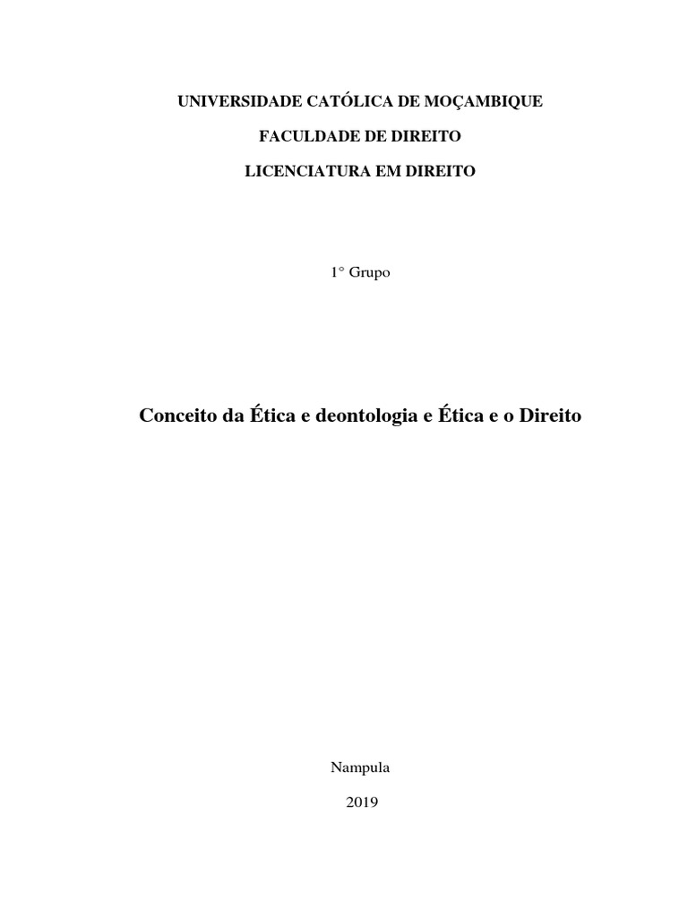 O presente trabalho que tem como tema ”conceito da ética e deontologia e Ética e o