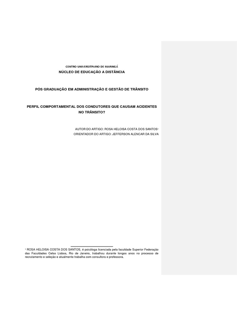 Palavras Chaves: Trânsito; Acidentes; Psicologia; Imprudência; Social.