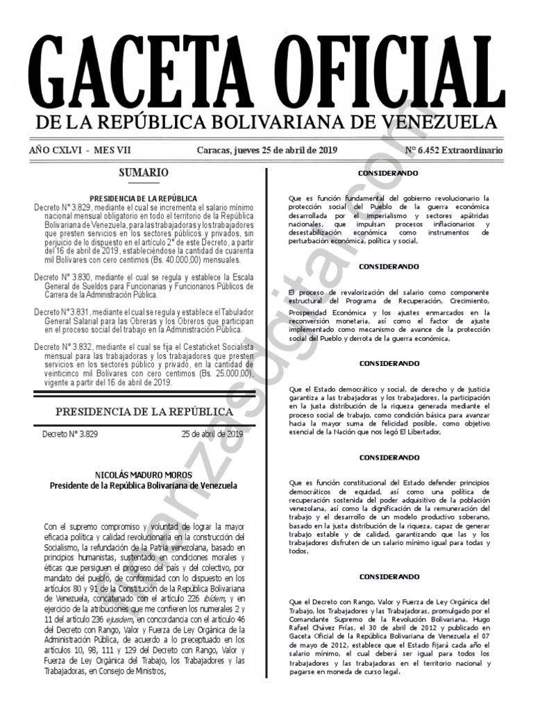 AÑO CXLVI - MES VII Caracas, jueves 25 de abril de 2019 N° 6.452 Extraordinario