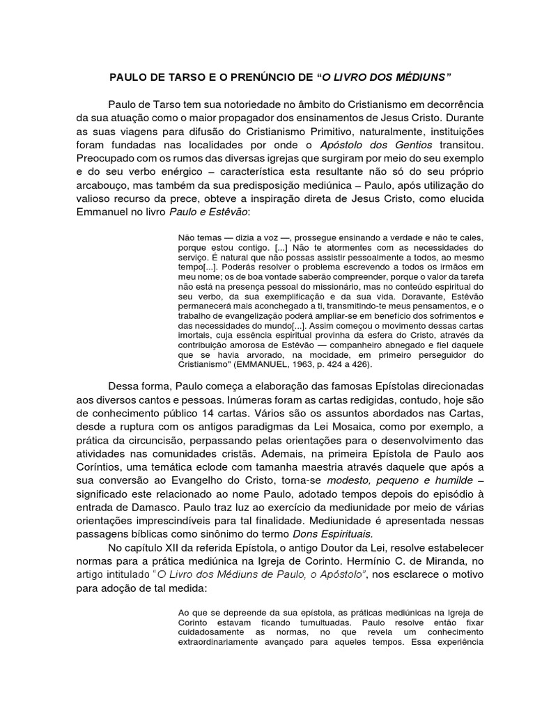 artigo intitulado “O Livro dos Médiuns de Paulo, o Apóstolo”, nos esclarece o motivo