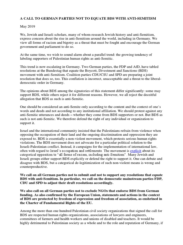 BDS with anti-Semitism. In particular, we call on the democratic mainstream parties FDP,