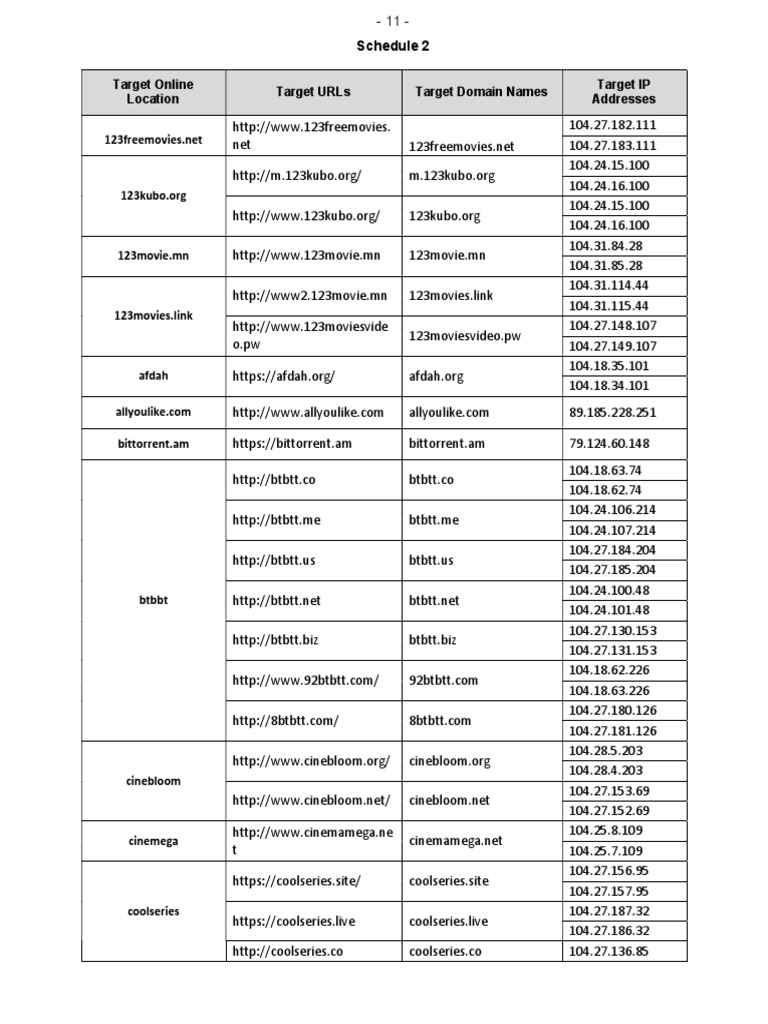 Target Online LocationTarget URLsTarget Domain NamesTarget IP Addresses