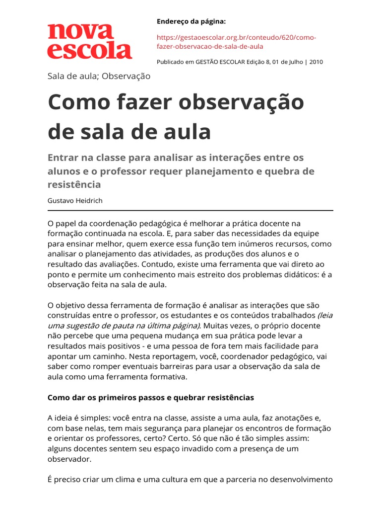 Sala de aula; Observação