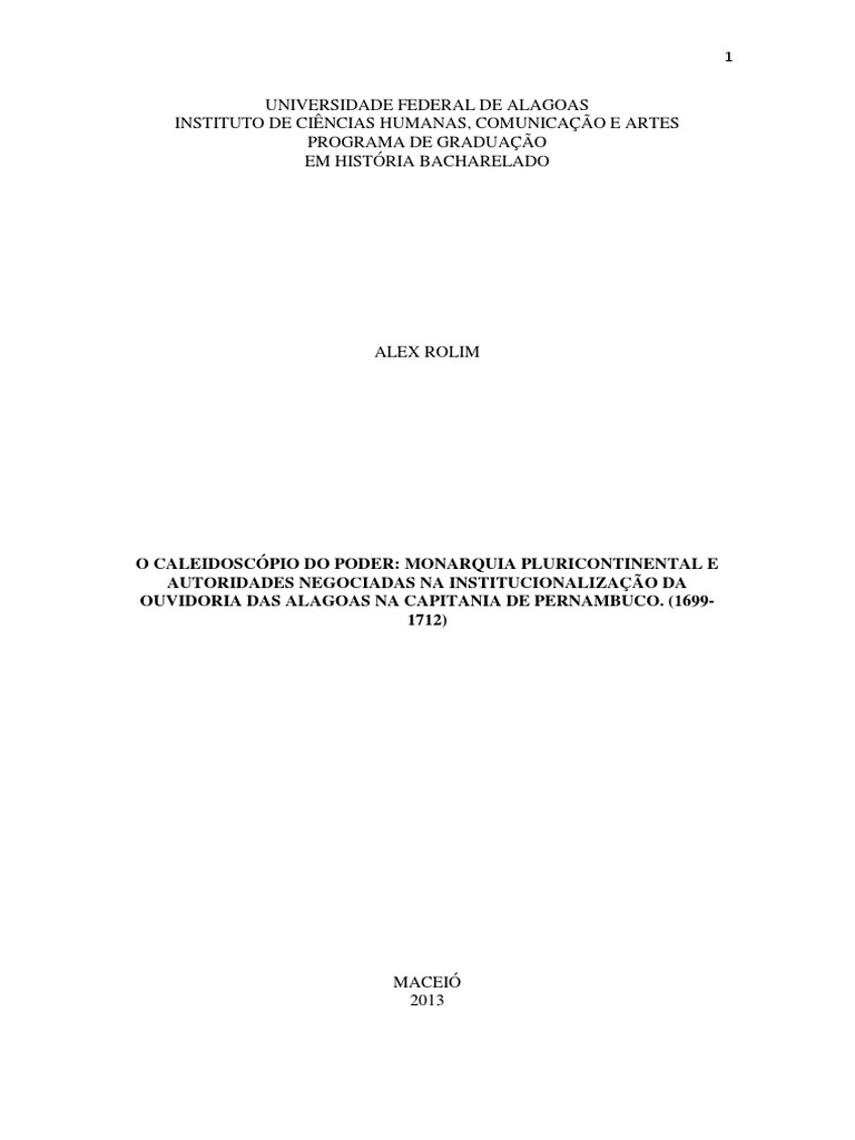 ROLIM, Alex. “Caos administrativo e atuação eclesiástica. Vila das Alagoas (c. 1770)”.