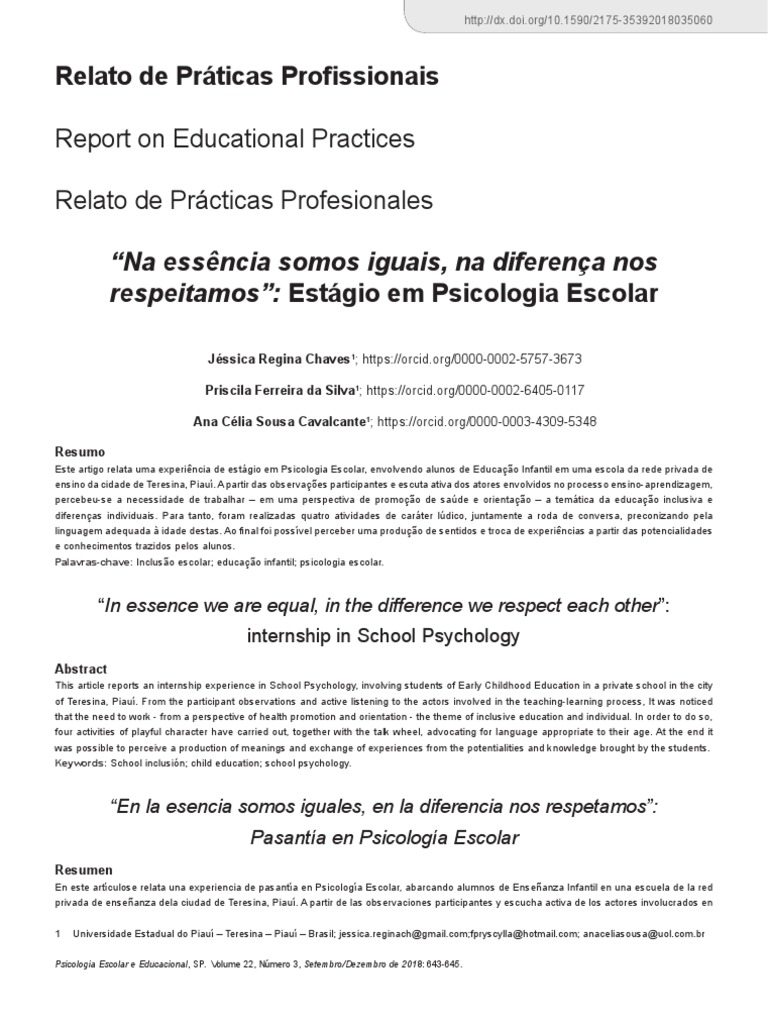 644 Psicologia Escolar e Educacional, SP. Volume 22, Número 3, Setembro/Dezembro de 2018: 643-645.