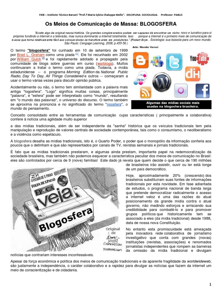 Os Meios de Comunicação de Massa: BLOGOSFERA
