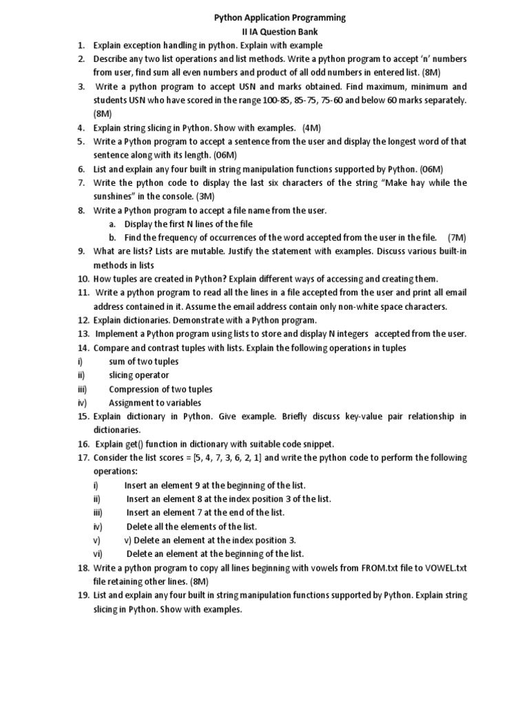 II IA Question Bank