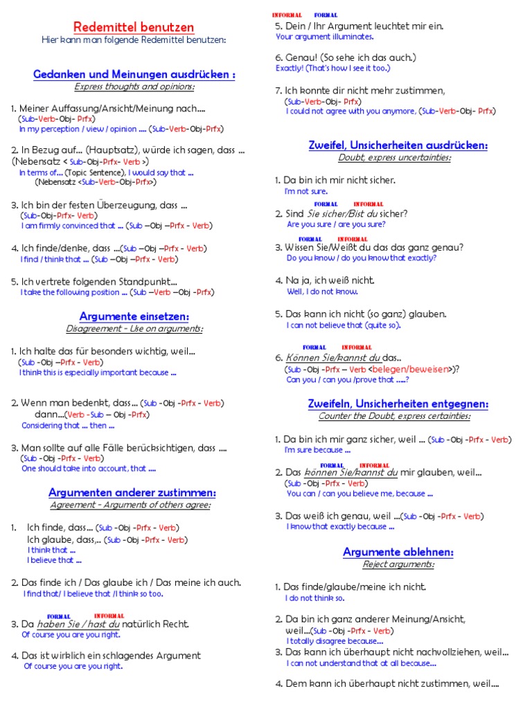 3. Ich bin der festen Überzeugung, dass … Formal Informal