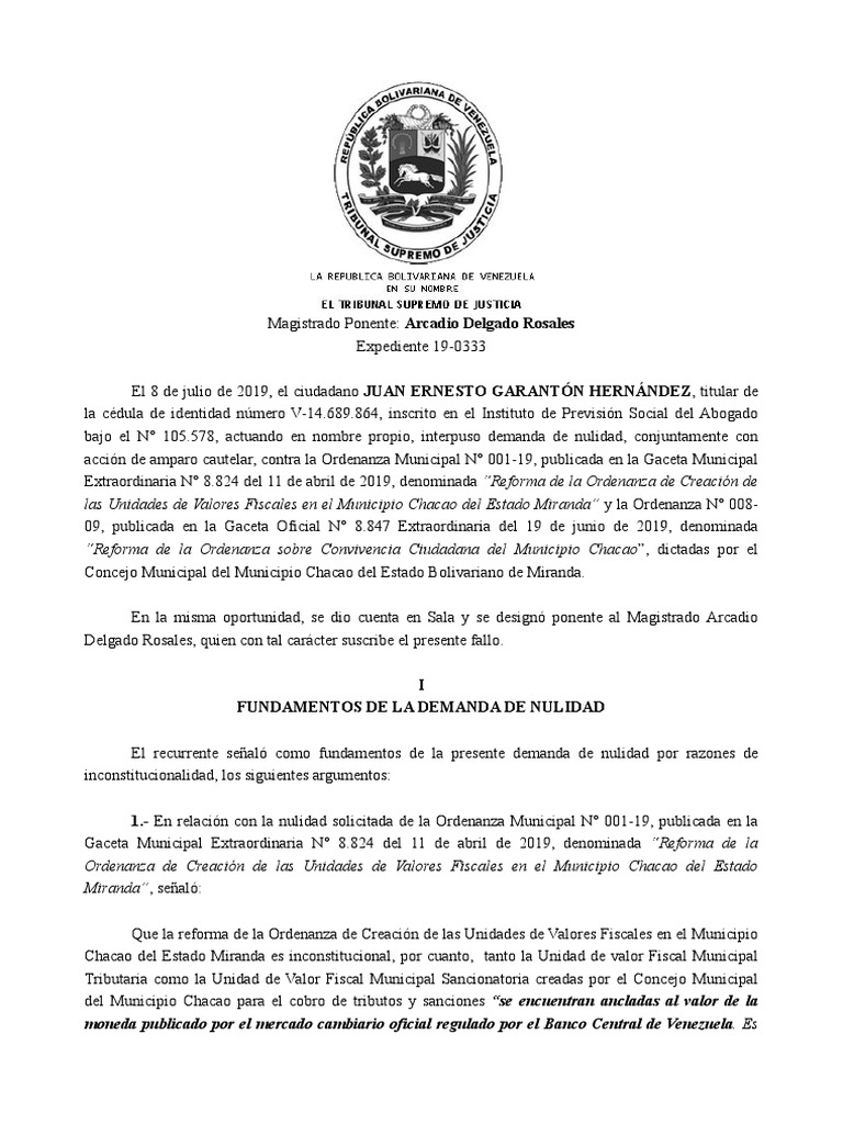 Municipal N° 001-19, publicada en la Gaceta Municipal Extraordinaria N° 8.824 del 11 de abril de 2019,