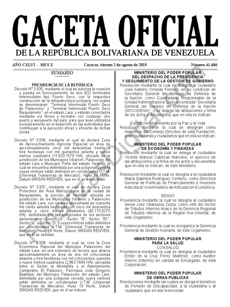 Decreto N° 3.936, mediante el cual se declara Zona i
